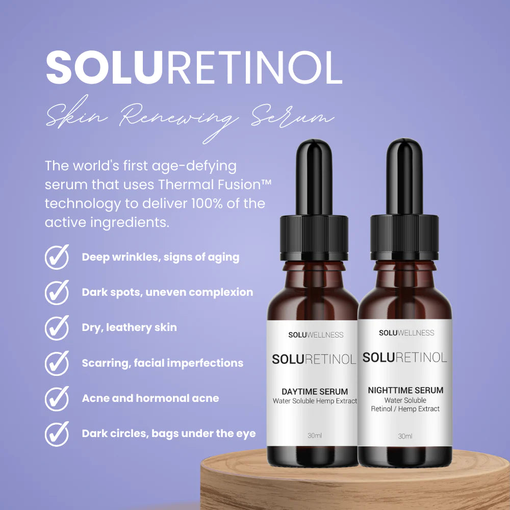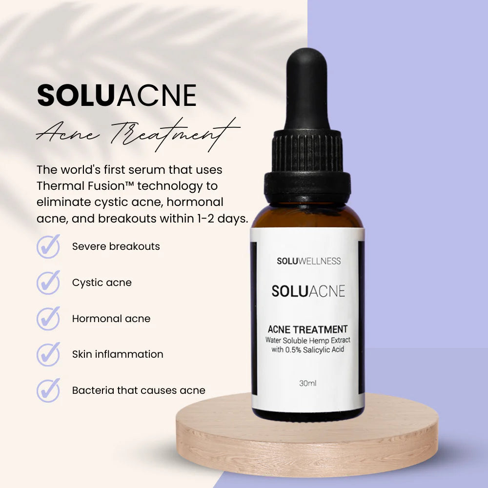 Harnessing the pioneering Thermal Fusion™ technology. SoluAcne is a US-made serum that eliminates stubborn cystic acne, hormonal acne, and breakouts within an astonishing 1-2 days, thanks to its advanced formula and skin-penetrating capabilities. Meanwhile, SoluRetinol, another cutting-edge creation, quickly renews and hydrates your skin, erasing virtually all signs of aging. Both products are designed to deliver 100% of their active ingredients, showcasing our commitment to providing innovative solutions for skincare needs. Discover the power of Thermal Fusion™ technology with our brand and unlock a brighter, clearer, and more youthful complexion.